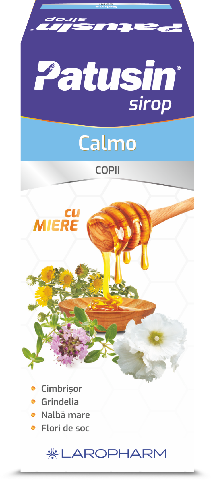 Suplimentul alimentar Patusin Calmo Copii sirop reunește în formula sa mierea, mierea de mană și